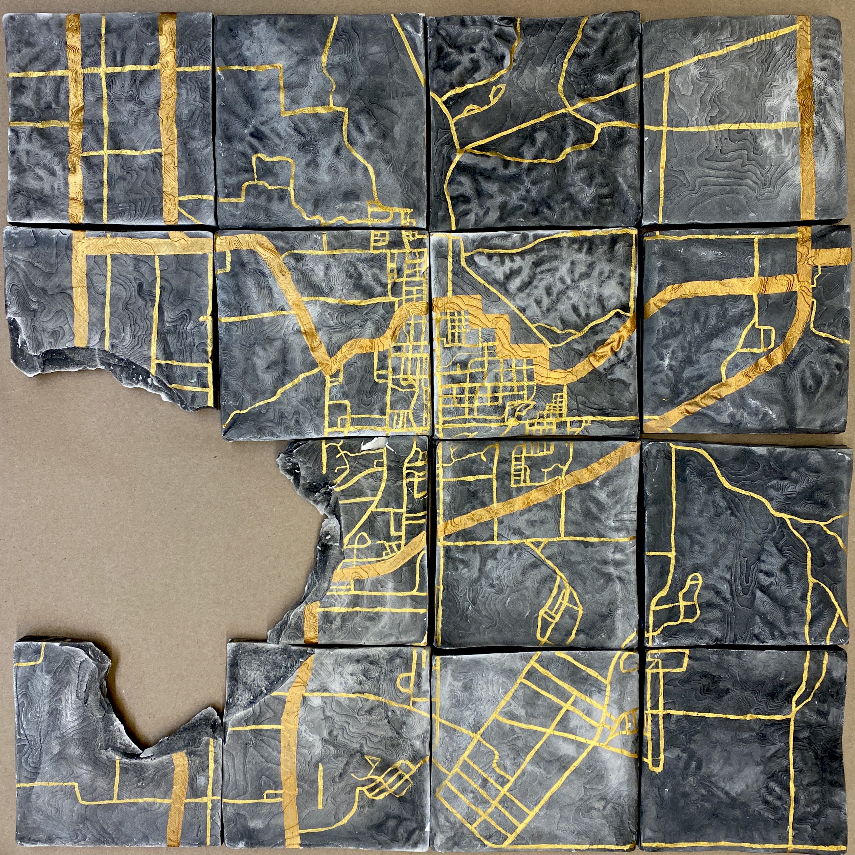 As someone who experienced frequent displacement during childhood I was not afforded the opportunity to keep many of the objects composing my autotopography. This piece is a reflection of that missing feeling. It is a map of Neosho, Missouri; the town I lived in for the majority of my childhood.